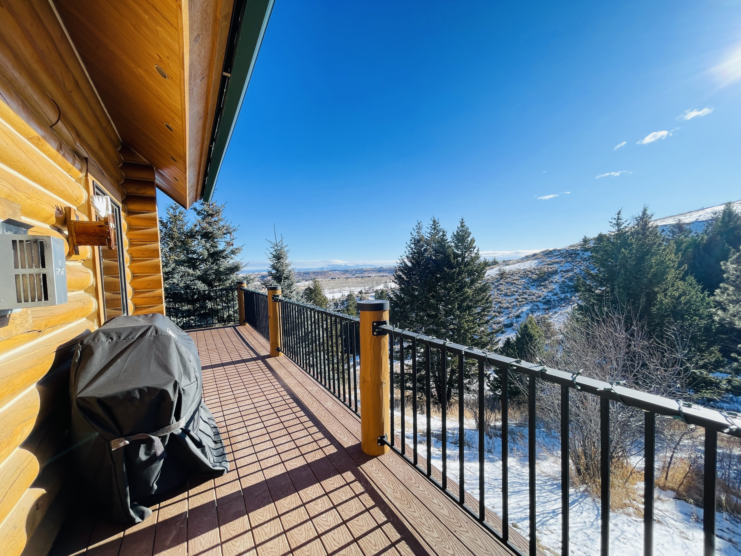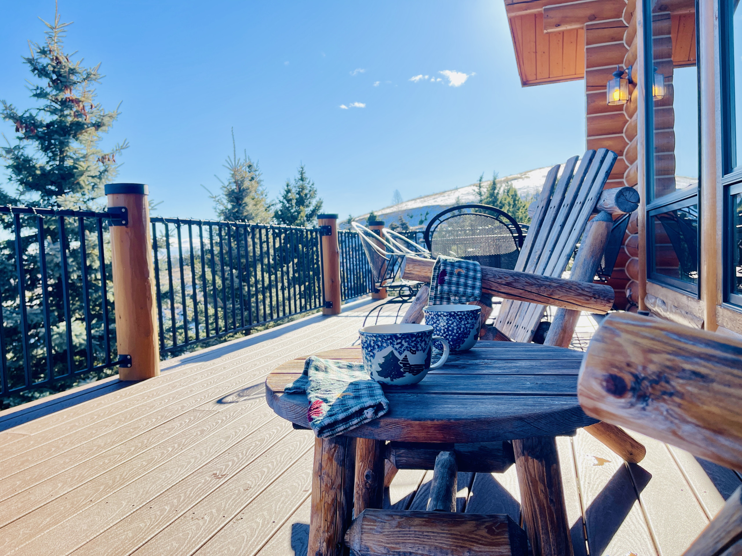 Guests can enjoy the morning sunrise from the deck while sipping coffee, brunch-time mimosa or evening cocktails. After a long day of summer hiking in the Beartooths or winter skiing at Red Lodge Mountain guests can rest and unwind in the hot tub under a star lit sky and a moon so big and bright you swear you can reach out and touch it.