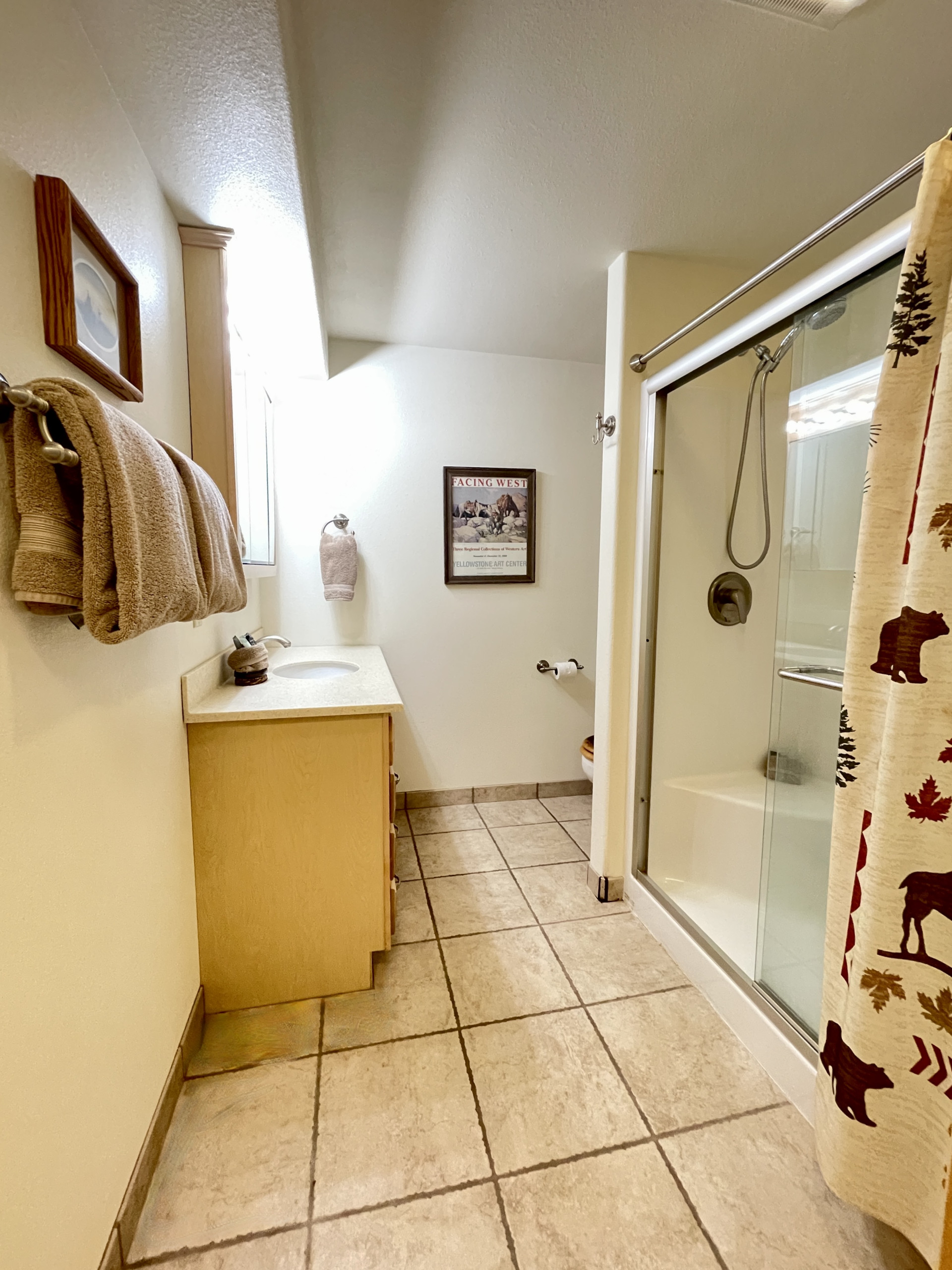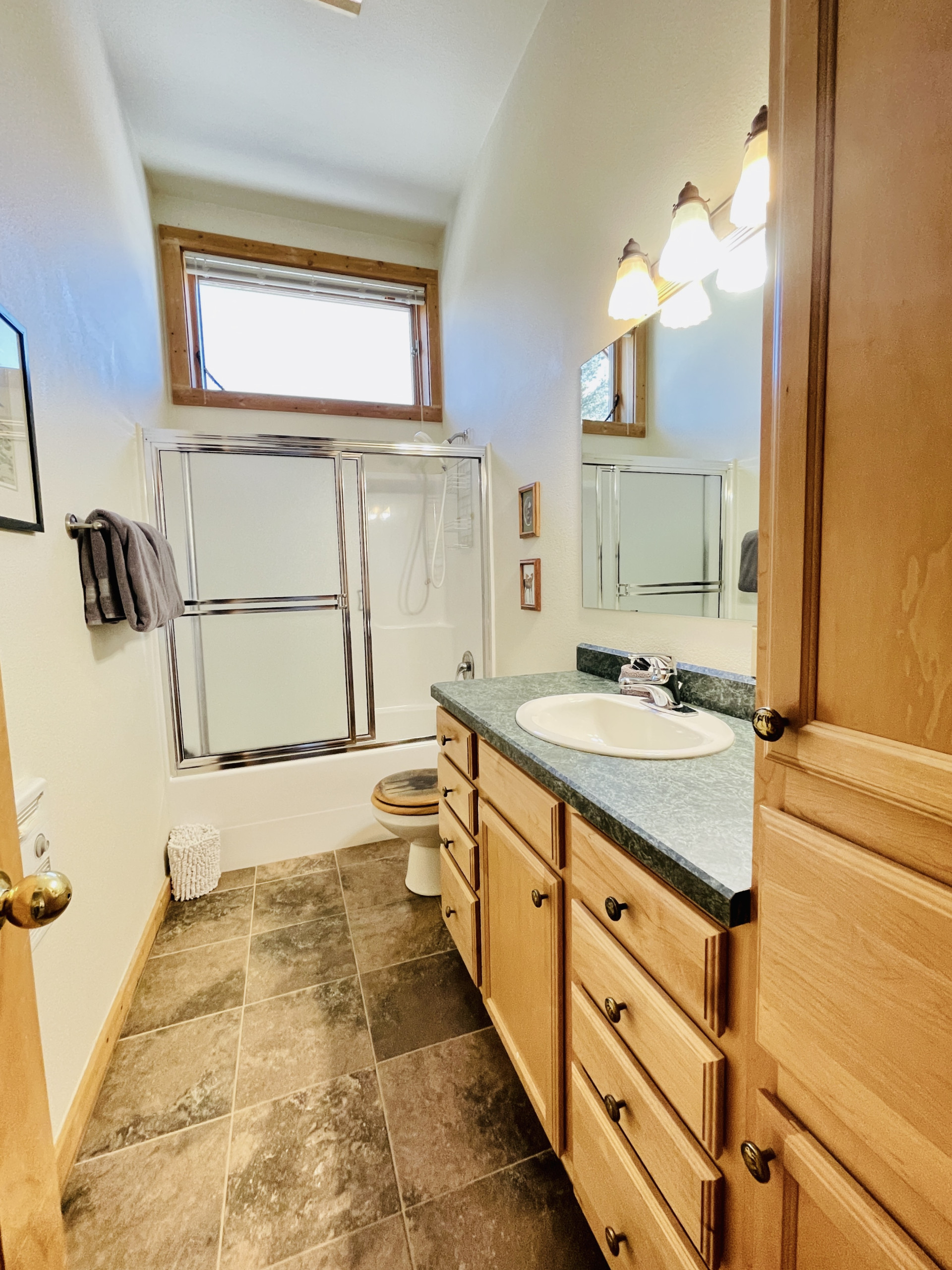 When you’re ready for some shut-eye, there are 4 bedrooms to snuggle up in. The main level master has a King while the remaining rooms all have Queen beds for your comfort. Upper level has a full bath shared between two bedrooms, main level has a jack and jill bath between master and family area, lower level has a 3/4 bath.