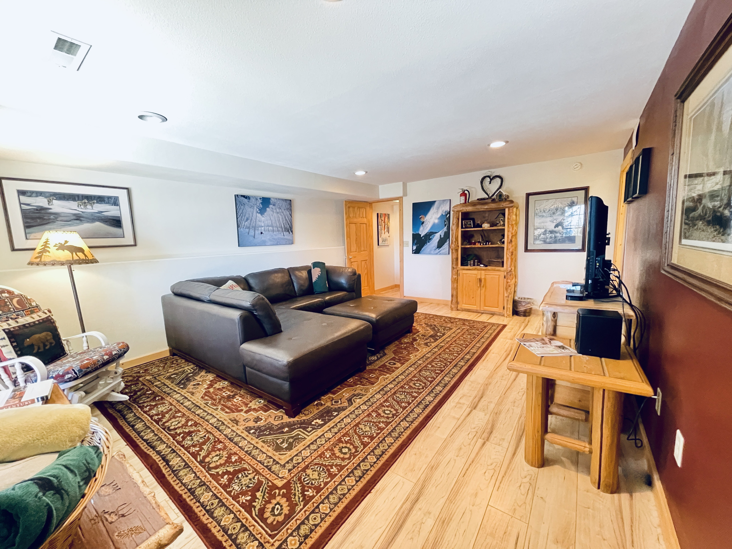 Perfect for the family with open concept living space, kitchen island to gather around, floor to ceiling rock gas fireplace to cozy up to and separate family room in the lower level for family game time (several games provided!).