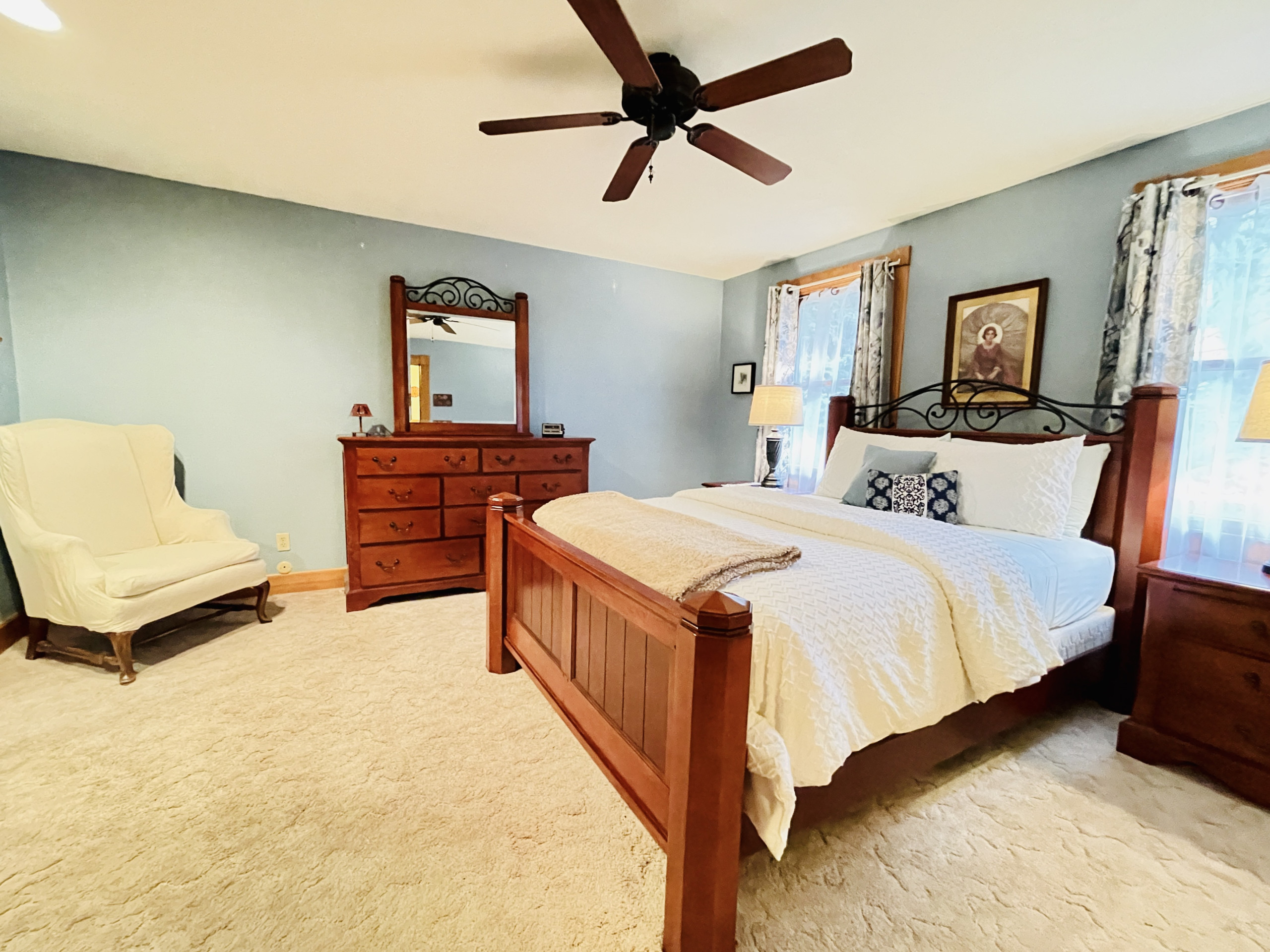 Each of your 3 bedrooms are good sized with the front bedroom hosting a queen bed. The middle bedroom is furnished with a King bed. Generous size 3/4 bath in between. The back bedroom is spacious with two (2) queen beds and a nearby separate full bathroom.